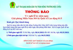 Tin tứcThông báo nghỉ lễ kỷ niệm ngày Giải phóng Miền Nam & Quốc tế Lao động 30/4 – 01/5 Đăng vào 27 Tháng 4, 2022 bởi ngv_admin ngv_admin NCF thăm và tặng quà cho em học sinh lớp 6 tại xã Vân Hồ bị bệnh hiểm nghèo Đồng chí Phạm Đức Toàn – phó Ban Thi đua khen thưởng TW cùng đoàn công tác đến thăm và làm việc tại NCF