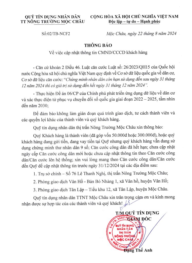 Tin tứcNCF xin trân trọng gửi tới Quý khách hàng Thông báo về việc cập nhật thông tin CMND/CCCD Đăng vào 23 Tháng 8, 2024 bởi ngv_admin ngv_admin CÔNG BỐ LÃI SUẤT BÌNH QUÂN THÁNG 8/2024 CÔNG BỐ LÃI SUẤT BÌNH QUÂN THÁNG 9/2024