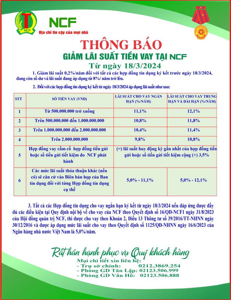 NCF xin trân trọng gửi tới Quý khách hàng lịch nghỉ quyết toán năm 2024 và nghỉ Tết Dương lịch 2025. Thời gian nghỉ giao dịch: Từ ngày 01/01/2025 đến hết ngày 05/01/2025 (Bao gồm cả Thứ bảy, Chủ nhật) Thời gian giao dịch trở lại: Ngày 06/01/2025. Kính chúc Quý khách hàng có một […]